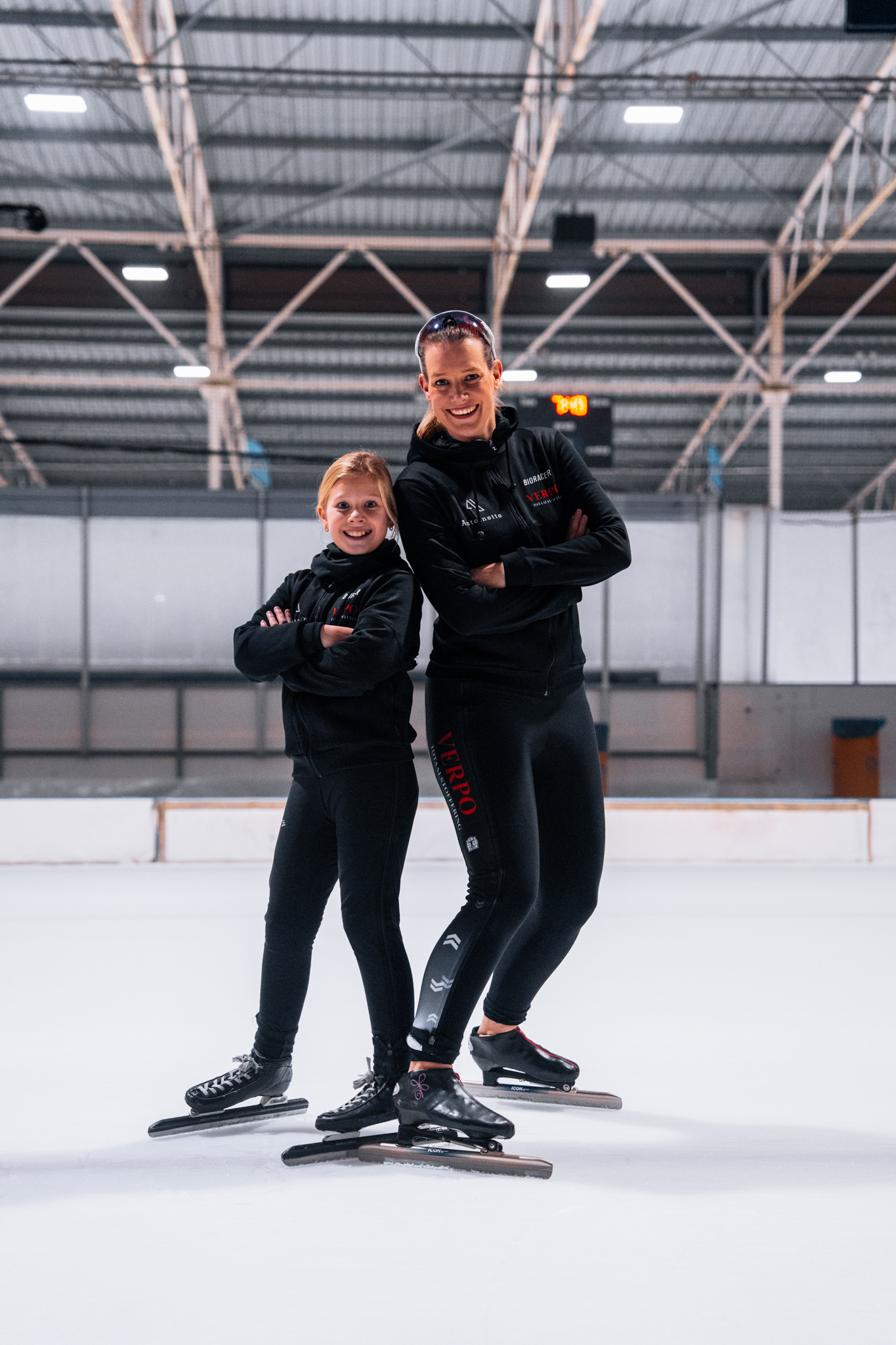 Monique & Faith schaatsen 100 rondjes tegen pesten